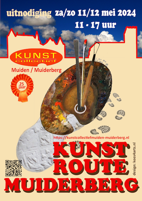 Na een (Corona)uitstel van ruim een half jaar is er weer een Kunstroute gepland door ons Kunstcollectief Muiden & Muiderberg. Dit keer is Muiden aan de beurt, op zaterdag 14 en zondag 15 mei van 11.00 uur to 17.00u.