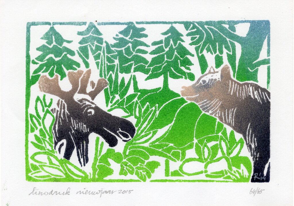 Linodruk Meerkleuren linodruk Hanoi, voorjaar 2020. oplage 10. Nieuwjaarslino 2015, Herinnering aan Sri Lanka Linodruk, 3 plaatjes. Titel: de Grens. Maakt deel uit van de boek “de Grens” met de lino’s van 10 deelnemers aan dit project olv Tom Thijsse. 2013. Nieuwjaarsdrukken ’12/13 ’13/14 ’06/’07 ’08/09 ’07/’08 ’14/15