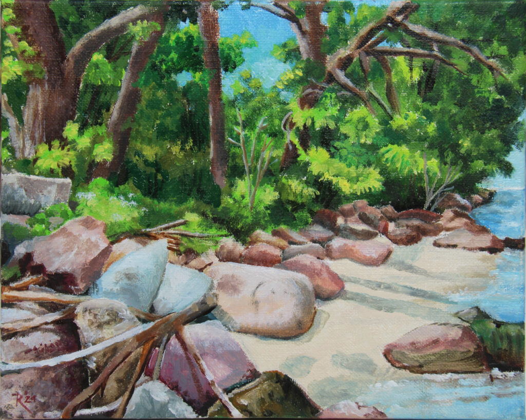 Rotskust Noord Guernsey – 2024 – doek op paneel